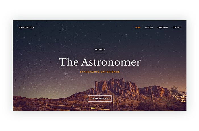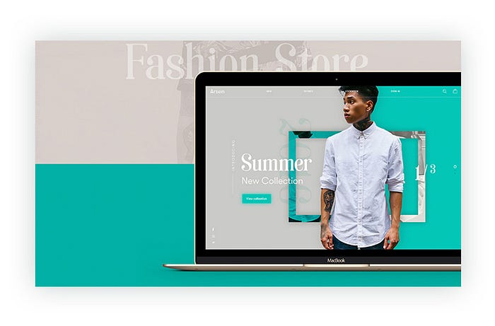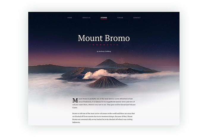 Tasarımcı Piotr Adam Kwiatkowski’nin online dergilere yönelik hazırladığı konsept arayüz tasarımında, karşılama ekranı olarak arka planda tam ekran görsel kullanımı ve üzerindeki serif yazı tipiyle birlikte hayalet butonu kullanımı, arayüzde modern tarzı vurguluyor.